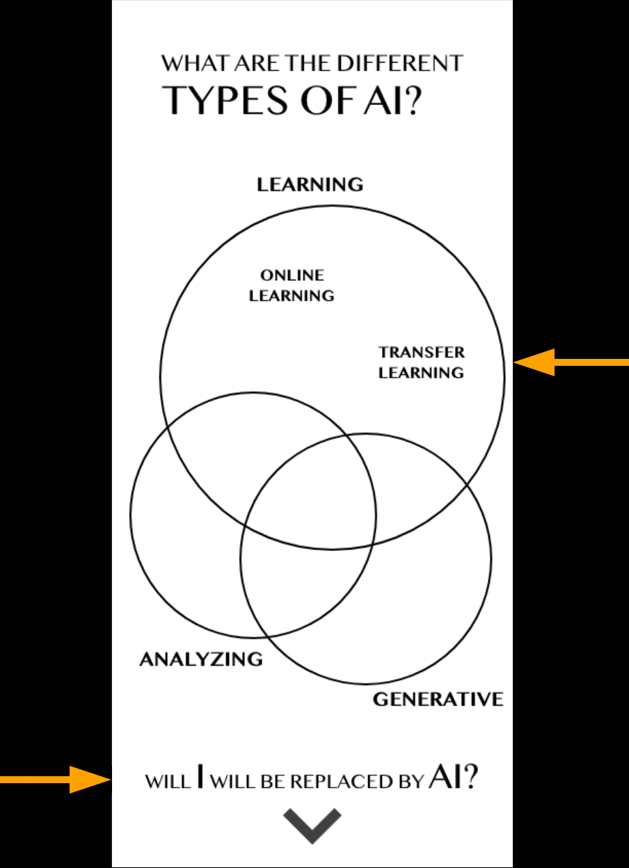 In the section addressing the different types of AI, the amount of content meant that, while the full website would be able to display all of the types at once, the mobile version would need to pair down the information and several additional pages would be needed to show everything.